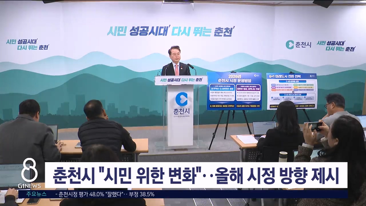 육동한 춘천시장은 오늘(6일) 기자회견을 열고, 교육과 민생경제, AI 선도도시 조성 등 올해 주요 시정 계획을 발표했습니다.