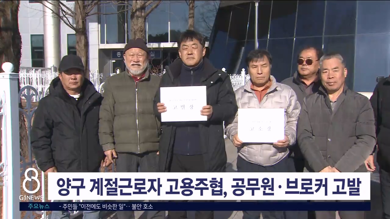 양구 외국인계절근로자 고용주협의회가 오늘(8일) 강원경찰청을 찾아 계절근로자 담당 양구군 공무원과 브로커를 고발했습니다.