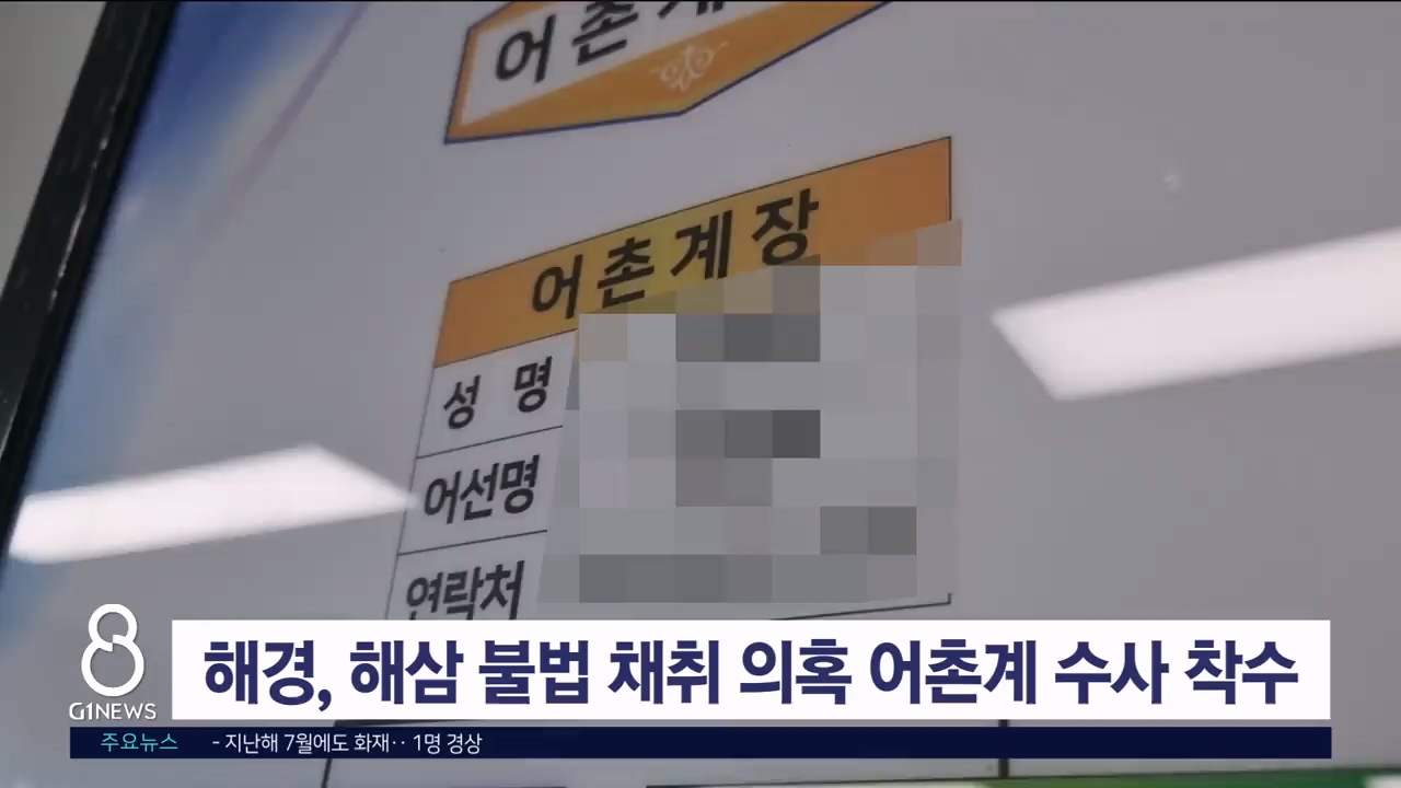 속초해양경찰서는 수산업법 위반 혐의 등으로 고성 모 어촌계 관계자 A씨 등을 불구속 입건해 수사 중이라고 밝혔습니다.