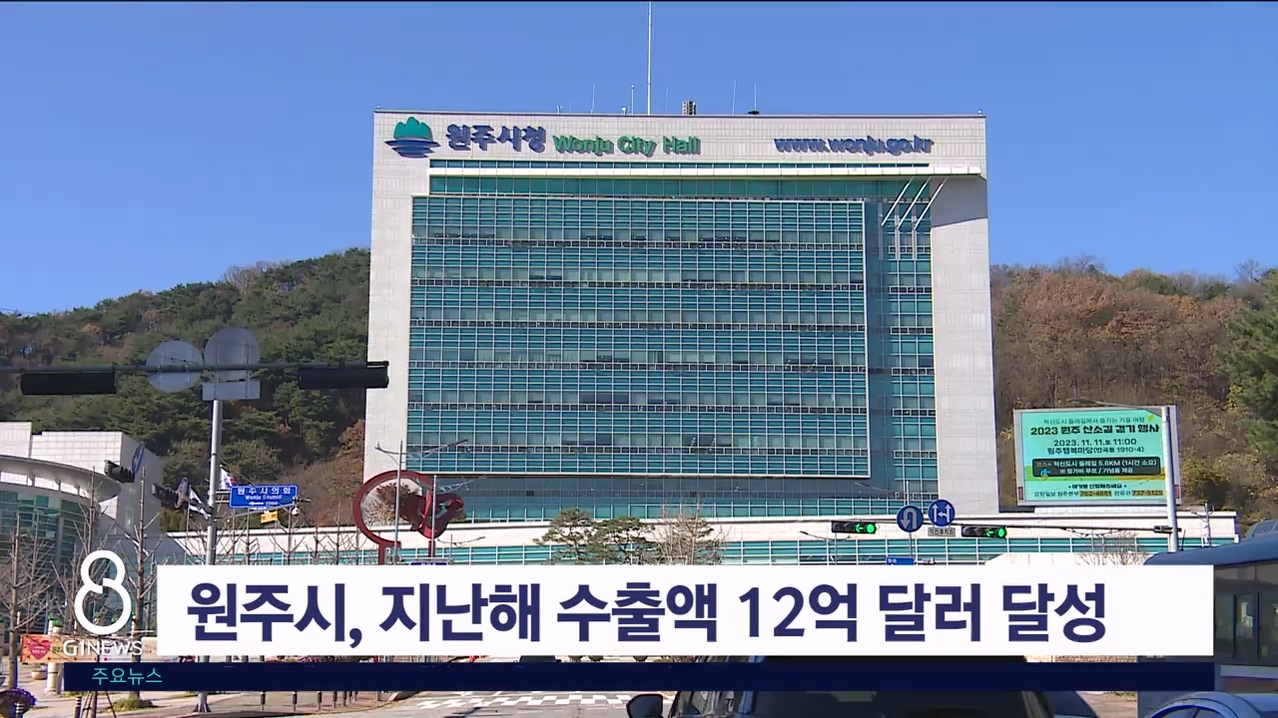원주시가 지난해 연간 수출액 12억 달러를 달성했습니다.