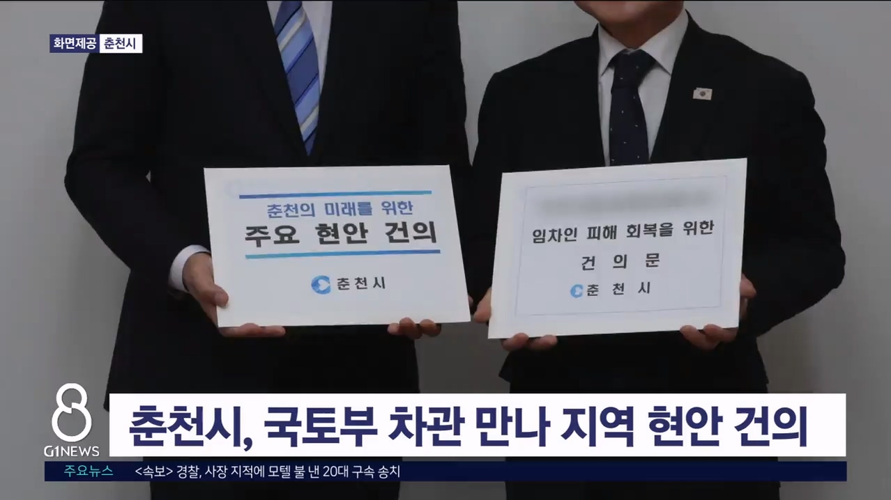 육동한 춘천시장이 오늘(20일) 서울 국토발전전시관에서 김이탁 국토교통부 1차관을 만나, 춘천 지역 현안을 건의했습니다.