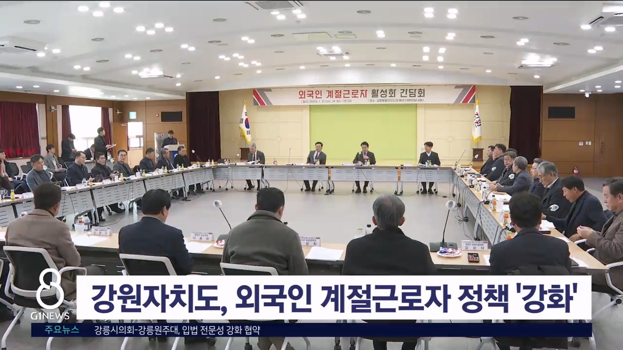 강원자치도가 농협과 춘천, 강릉 등 도내 8개 시군과 함께 외국인 계절 근로자 정책 강화를 위한 간담회를 가졌습니다.