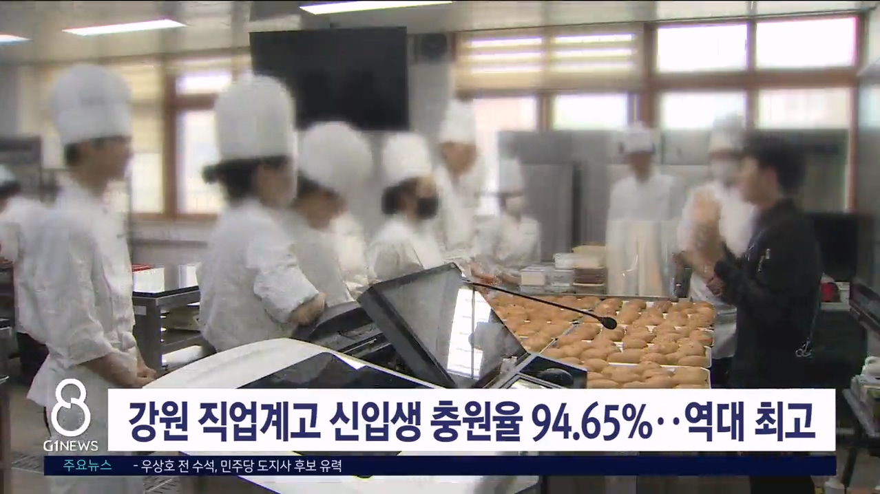 강원자치도교육청은 도내 27개 직업계 고등학교의 2026학년도 신입생 충원율이 94.65%를 기록했다고 밝혔습니다.