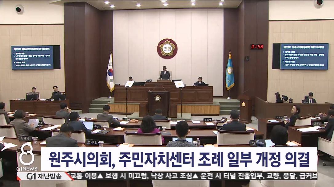 원주시의회, 주민자치센터 조례 일부개정안 의결