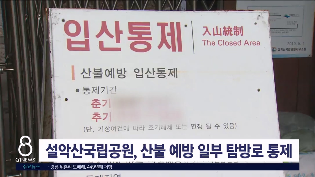 설악산국립공원이 봄철 산불 조심 기간을 맞아 산불 예방을 위해 다음달 4일부터 5월 15일까지 일부 탐방로 출입을 통제합니다.