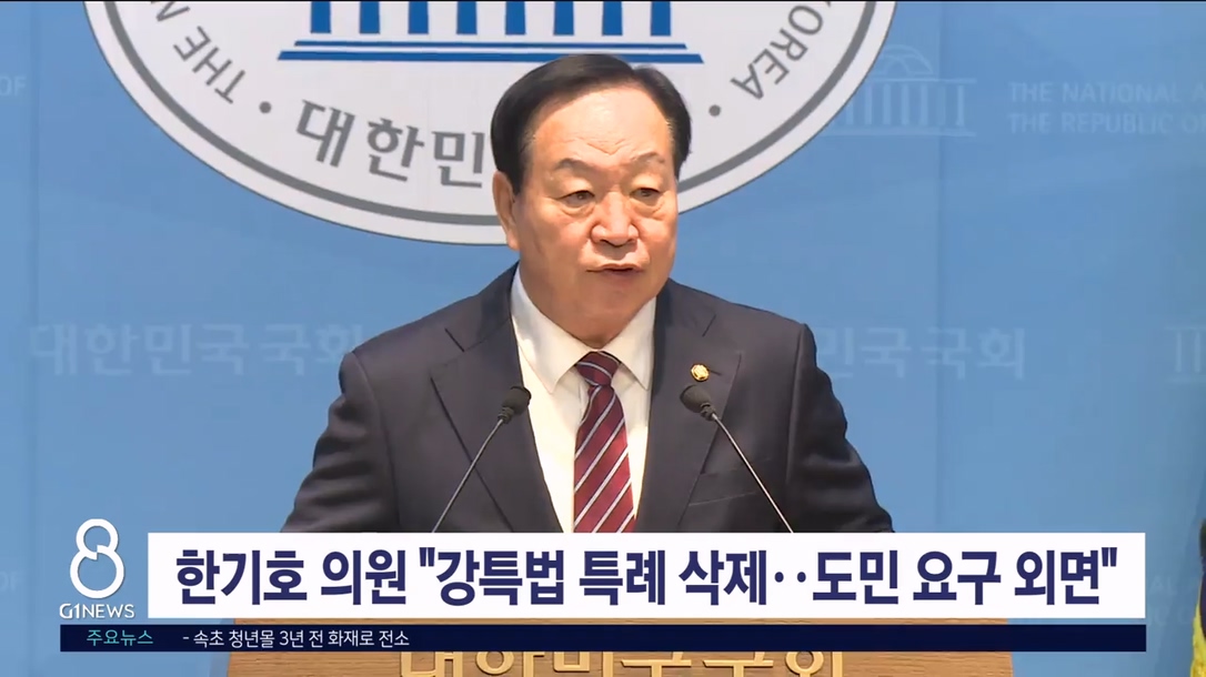국민의힘 한기호 의원이 강원 특별법 3차 개정안 상임위 논의 과정에서 핵심 특례가 삭제됐다며 강하게 반발했습니다.
