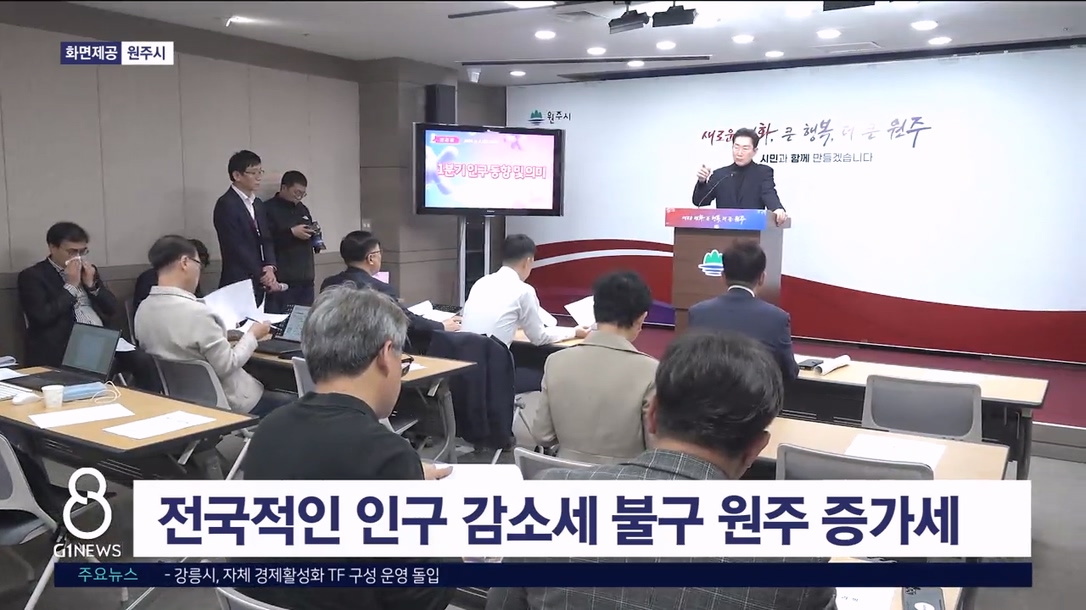 원강수 원주시장은 오늘(2일) 시청 브리핑룸에서 기자회견을 갖고, 올해 1분기 원주의 인구 증가세와 50만 대도시 도약을 위한 비전을 발표했습니다.