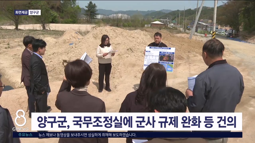 양구군이 지역을 찾은 국무조정실 특별자치시도 지원단에 군사 규제 완화와 군 유휴지 매각을 건의했습니다.