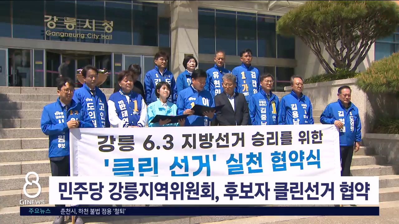 더불어민주당 강릉지역위원회가 오는 6월 3일 지방선거에 출마하는 후보자들의 클린선거 협약식을 열었습니다.