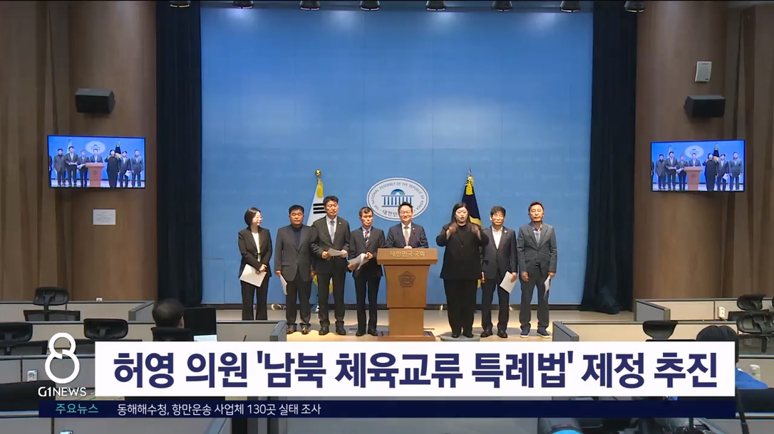 허영 의원은 오늘(27일) 국회 소통관에서 기자회견을 열고 남북 관계 변화와 상관없이 민간 차원의 체육 교류를 계속할 수 있도록 방문과 통관 절차 간소화 등을 담은 특례법을 발의하겠다고 밝혔습니다.