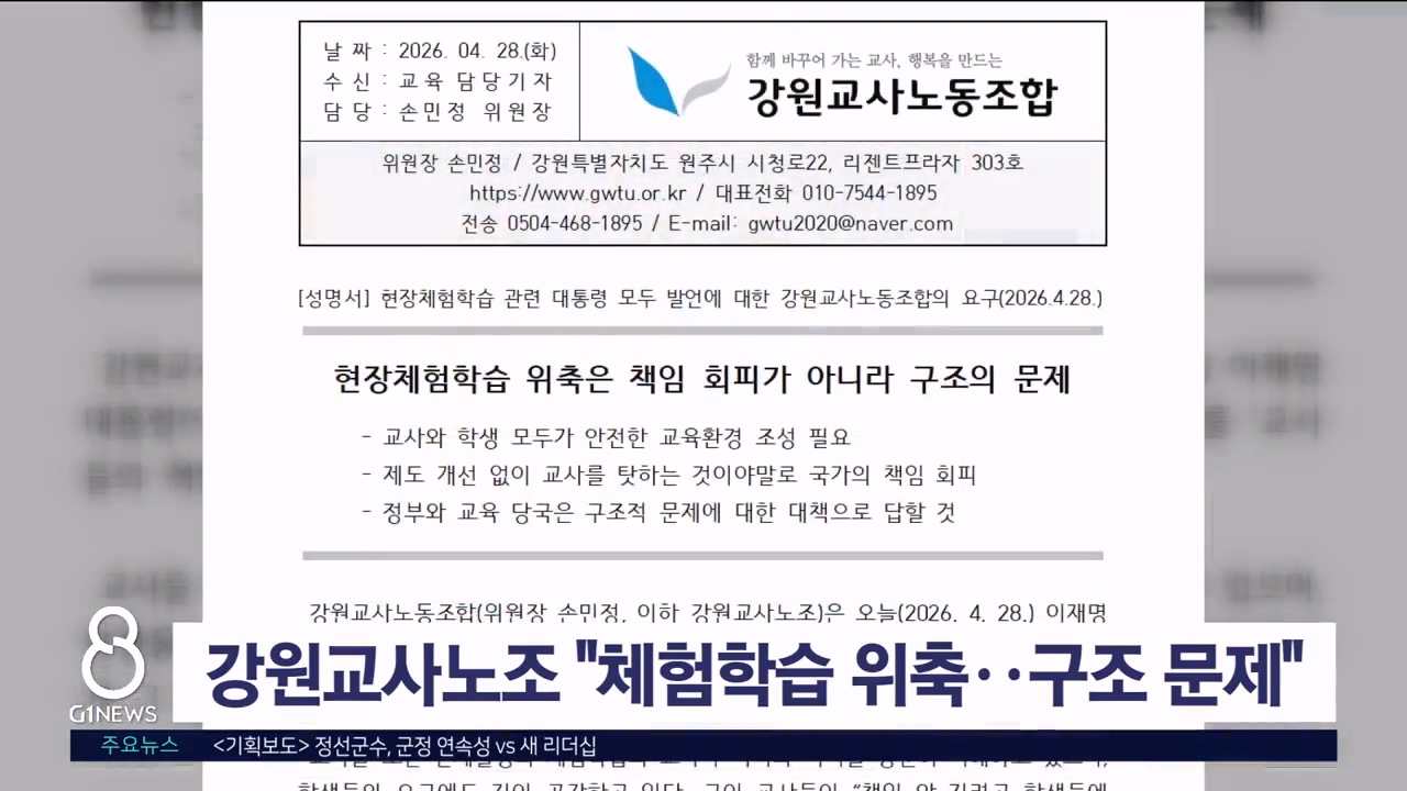 강원교사노동조합이 오늘(28일) 성명을 내고 현장체험학습 위축 현상을,