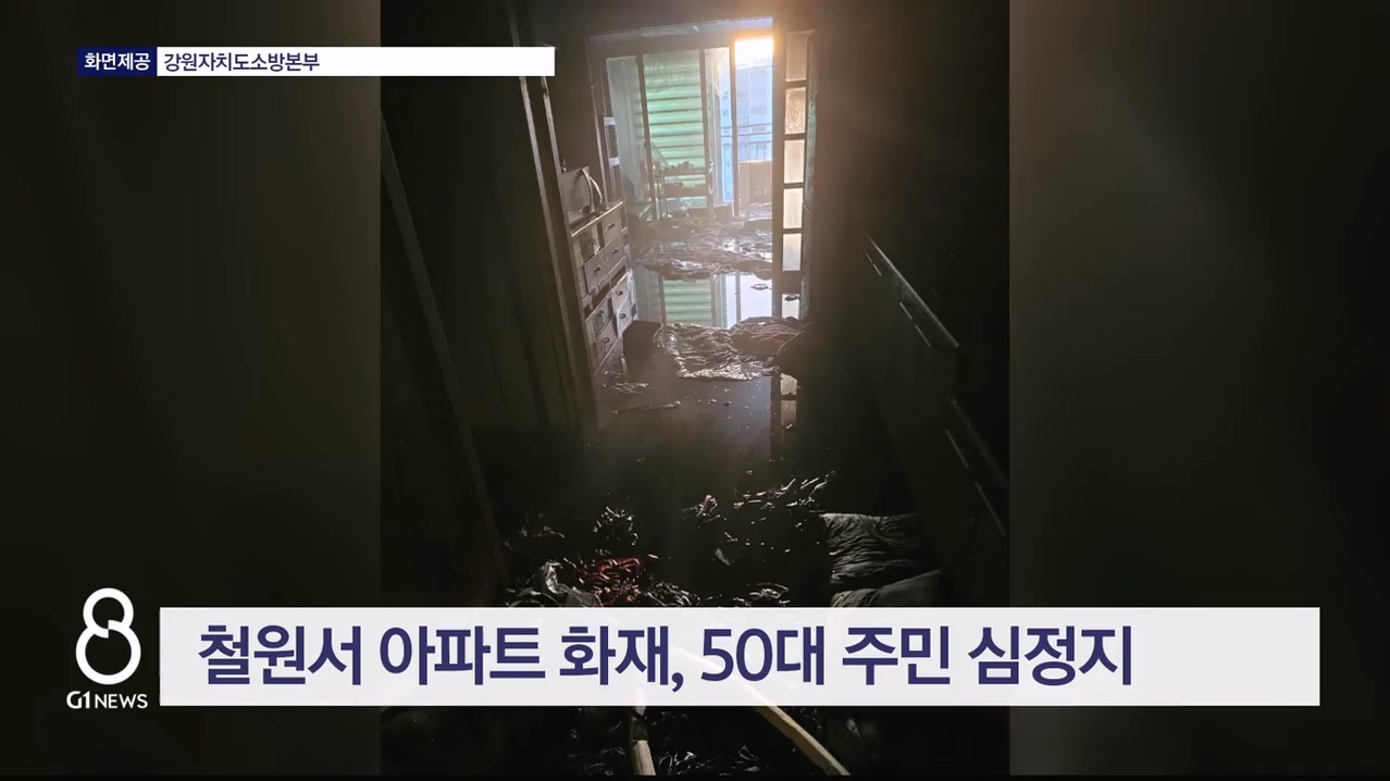오늘 아침 6시 반쯤 철원군 동송읍의 10층짜리 아파트에서 불이 나 50대 주민이 심정지 상태로 병원으로 이송됐습니다.