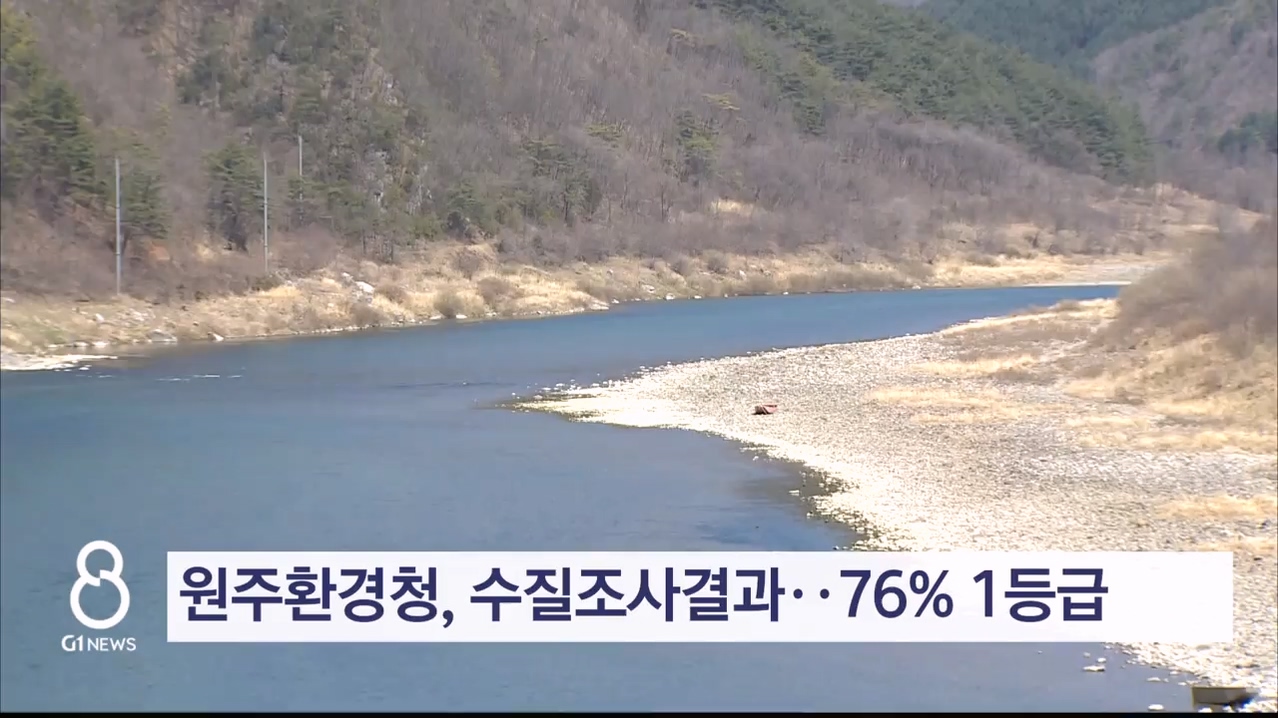원주지방환경청이 지난해 수질측정망을 조사한 결과 76%가 1등급으로 나타났습니다.