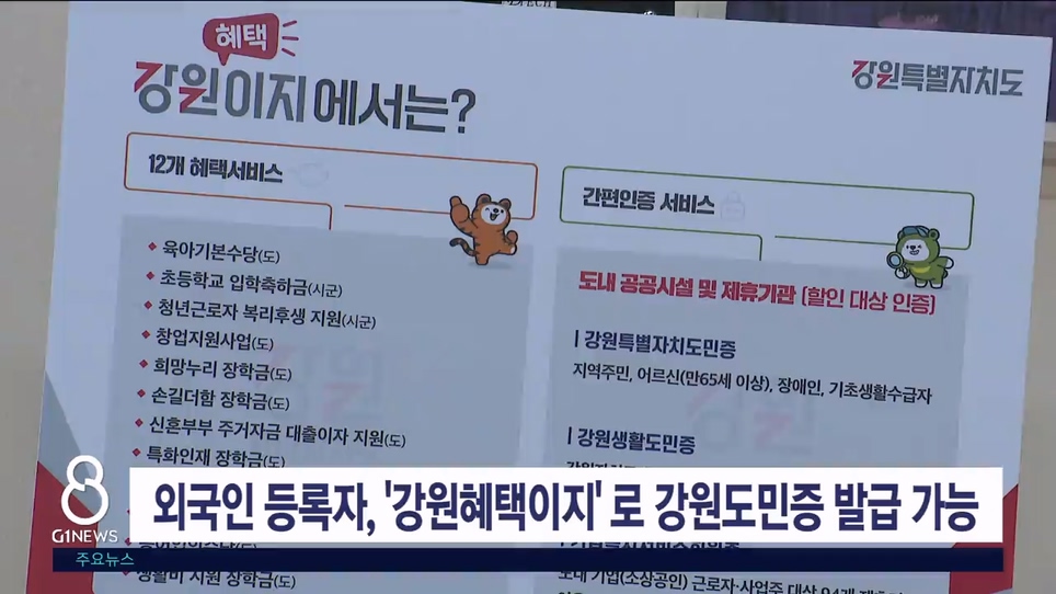 강원자치도가 내일(9일)부터 '강원혜택이지' 행정서비스를 통한 강원도민증 발급 대상을 외국인 등록자까지 확대 시행합니다.
