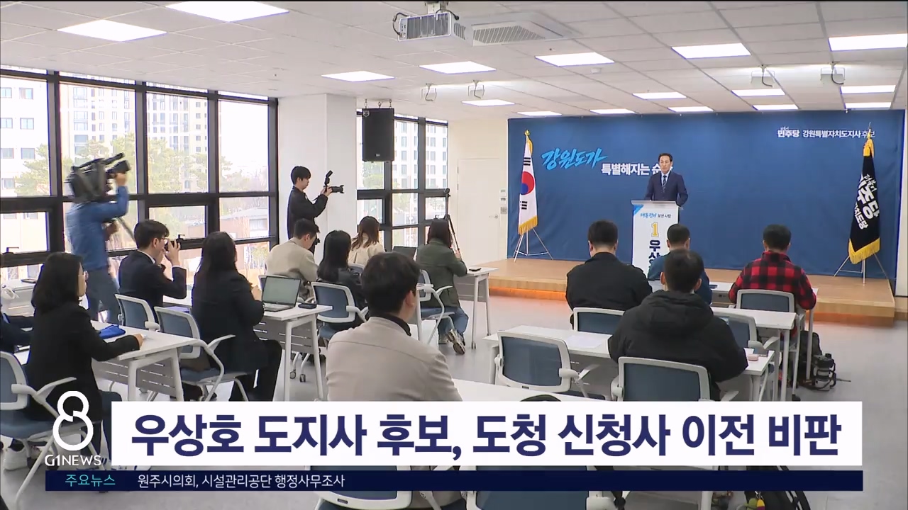 우상호 후보는 오늘(15일) 더불어민주당 도당에서 기자회견을 열고 "행정의 연속성을 위해 춘천 고은리로의 신축 이전 결정은 존중하겠다"고 밝혔습니다.