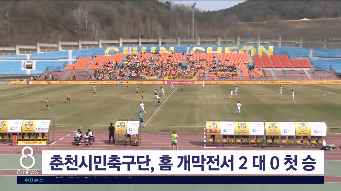 춘천시민축구단이 오늘(29일) 춘천 송암스포츠타운 주경기장에서 열린 홈 개막전에서 첫 승을 거뒀습니다.