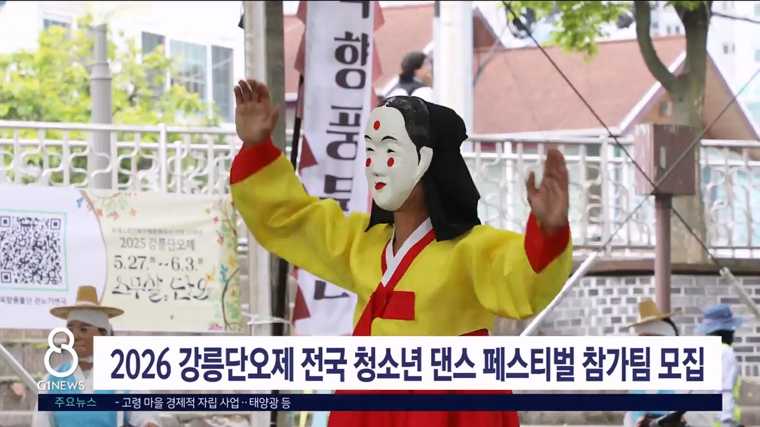 강릉시는 오는 6월 20일 강릉단오제 수리마당에서 개최되는 '2026 강릉단오제 전국 청소년 댄스 페스티벌'의 참가팀을 다음달(5월) 27일까지 모집합니다.