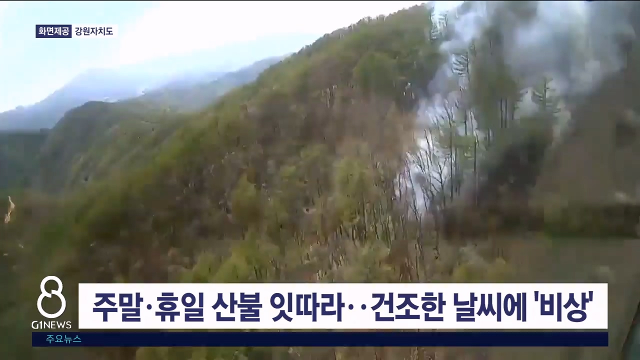 어제 영월군 무릉도원면과 삼척시 하장면에서도 산불이 나는 등 주말과 휴일 도내에서는 모두 3건의 산불이 발생했습니다.