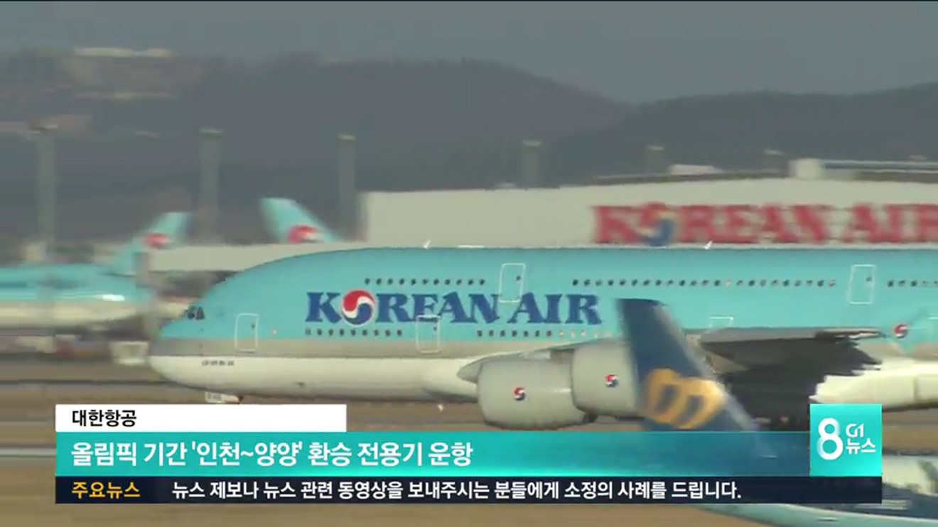 대한항공이 평창 동계올림픽을 지원하기 위해 다음 달 인천 공항과 양양공항을 잇는 환승 전용 내항기를 운항합니다.