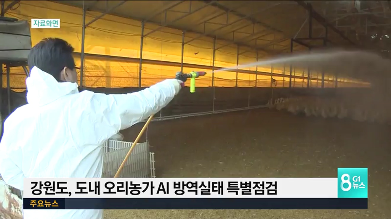강원도가 도내 오리농가에 대해 조류 인플루엔자 AI 방역실태 특별점검에 나섭니다.
