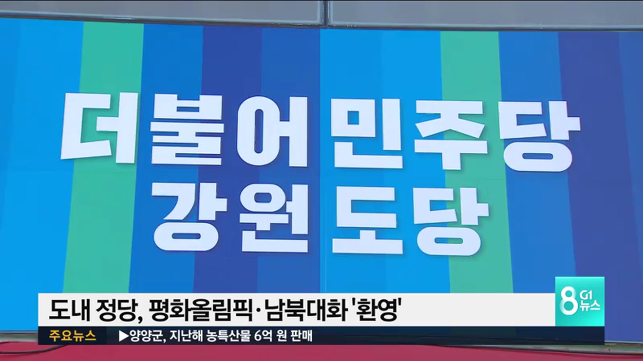 더불어민주당 강원도당은 논평을 통해, "남과 북이 함께하는 평창 동계올림픽은 전 세계인의 가슴에 영원히 기억될 평화의 상징이 될 것"이라며 "경색된 남북관계를 회복하고 한반도 평화시대를 여는 전환점"이라고 평가했습니다.