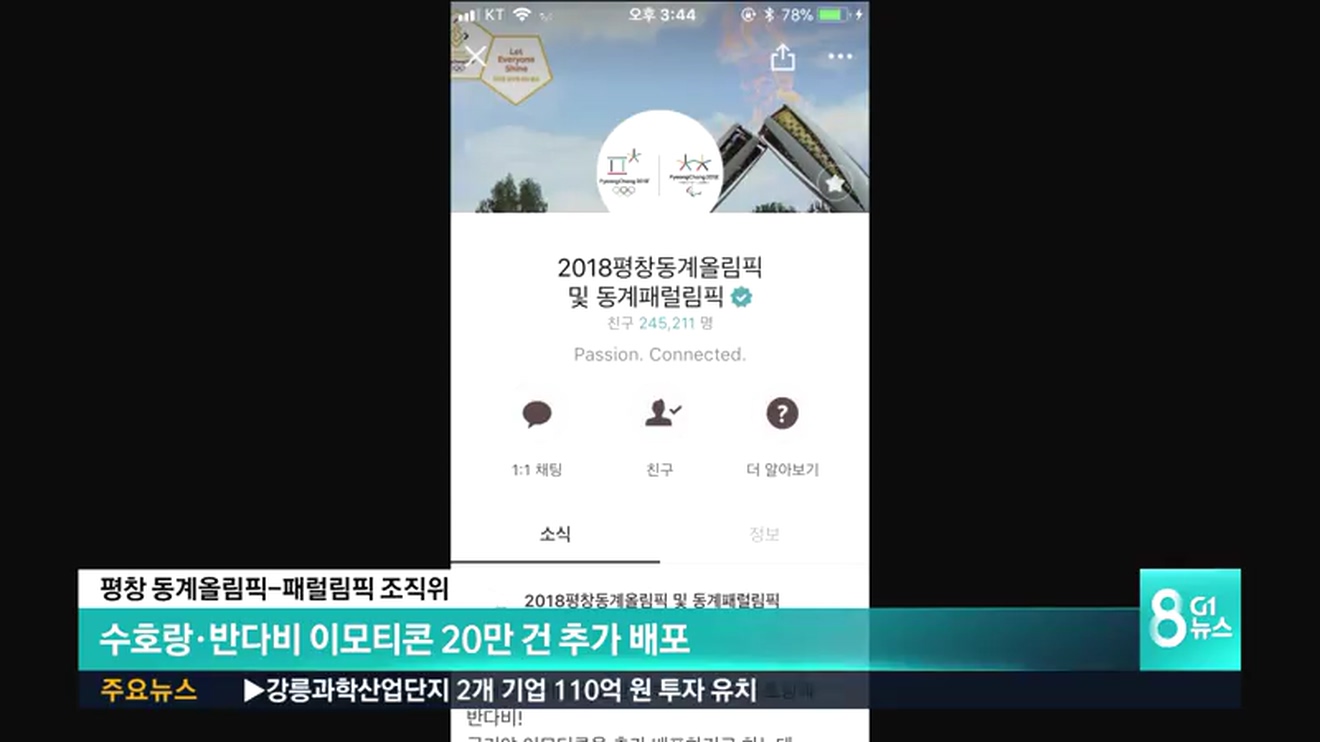 조직위는 어제 오후부터 무료로 배포했던 마스코트 수호랑·반다비 이모티콘이 6시간만에 10만 건 전량 소진돼 오늘 추가로 20만 건을 배포했습니다.
