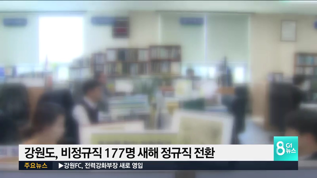 강원도는 정부의 공공부분 비정규직에 대한 정규직 전환 정책에 따라 도 소속 직간접 비정규직 177명을 정규직으로 전환했다고 밝혔습니다.
