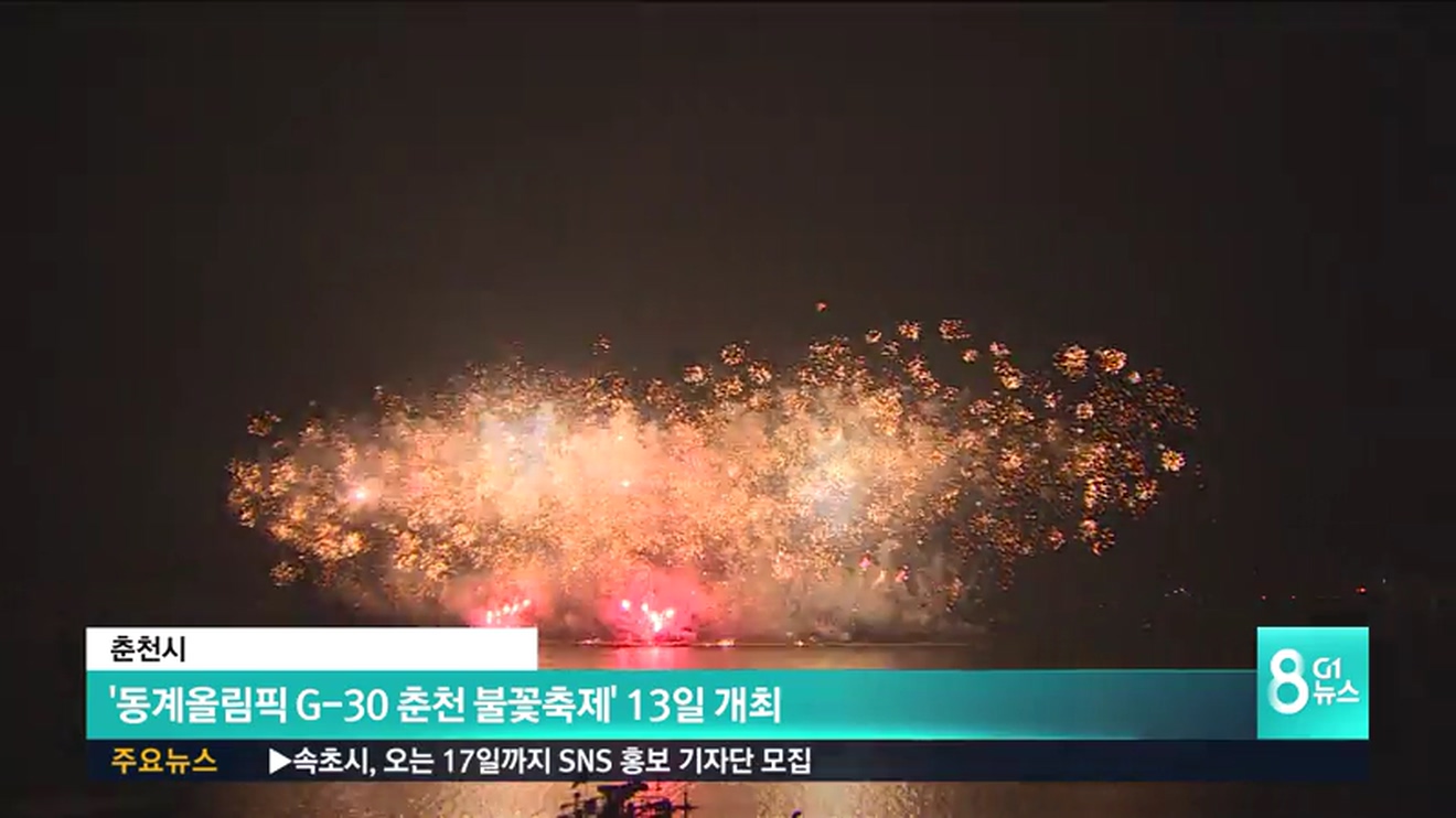 춘천시는 오는 13일 오후 4시부터 8시까지 소양강 스카이워크 일원에서 '2018 평창 동계올림픽 G-30 춘천 불꽃축제'를 개최한다고 밝혔습니다.