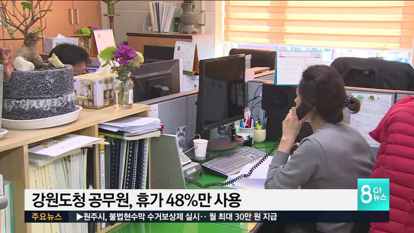 강원도에 따르면 지난해를 기준으로 한 강원도청 공무원들의 연간 평균 연가 사용일수는 9.6일로, 전체의 48%만 사용했습니다.