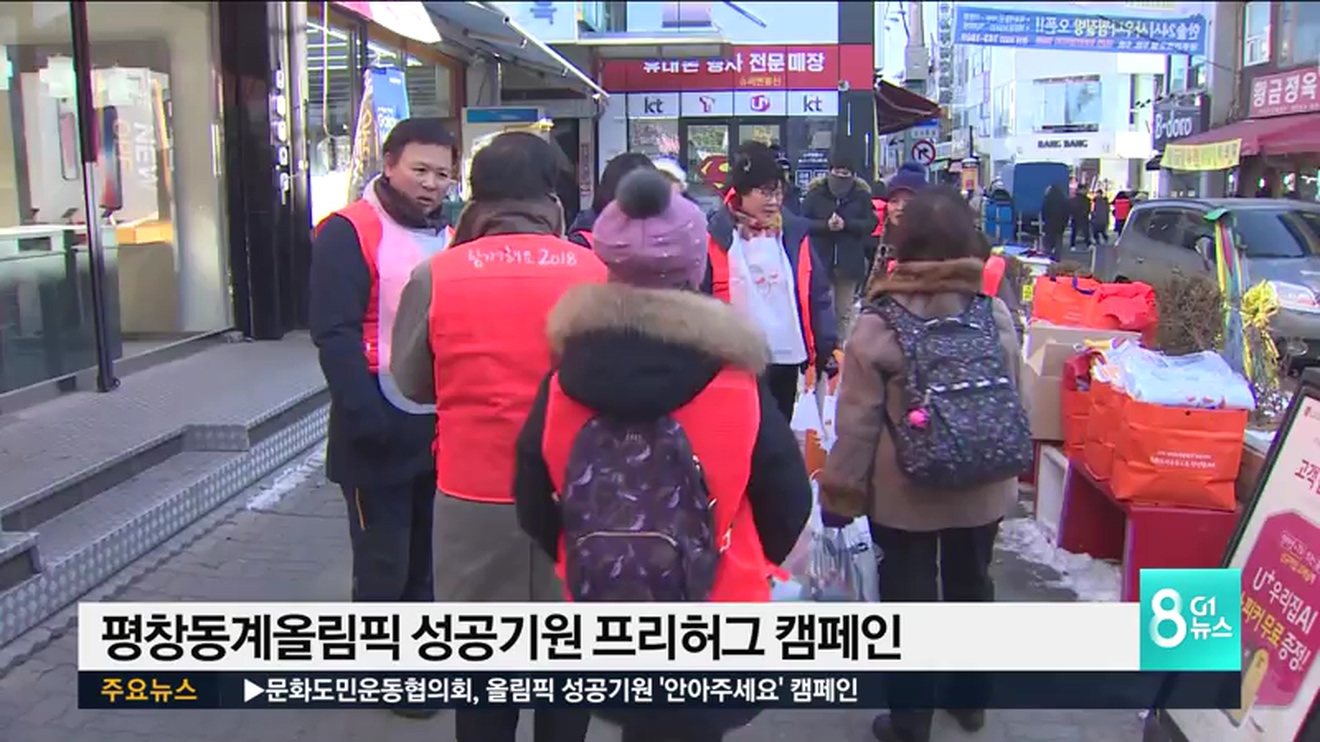 강원도문화도민운동협의회와 원주시협의회는 오늘 원주 중앙시장과 풍물시장 일대에서 일회용 앞치마 세트와 핫팩을 전달하며, 올림픽에 대한 도민들의 관심과 동참을 호소했습니다.