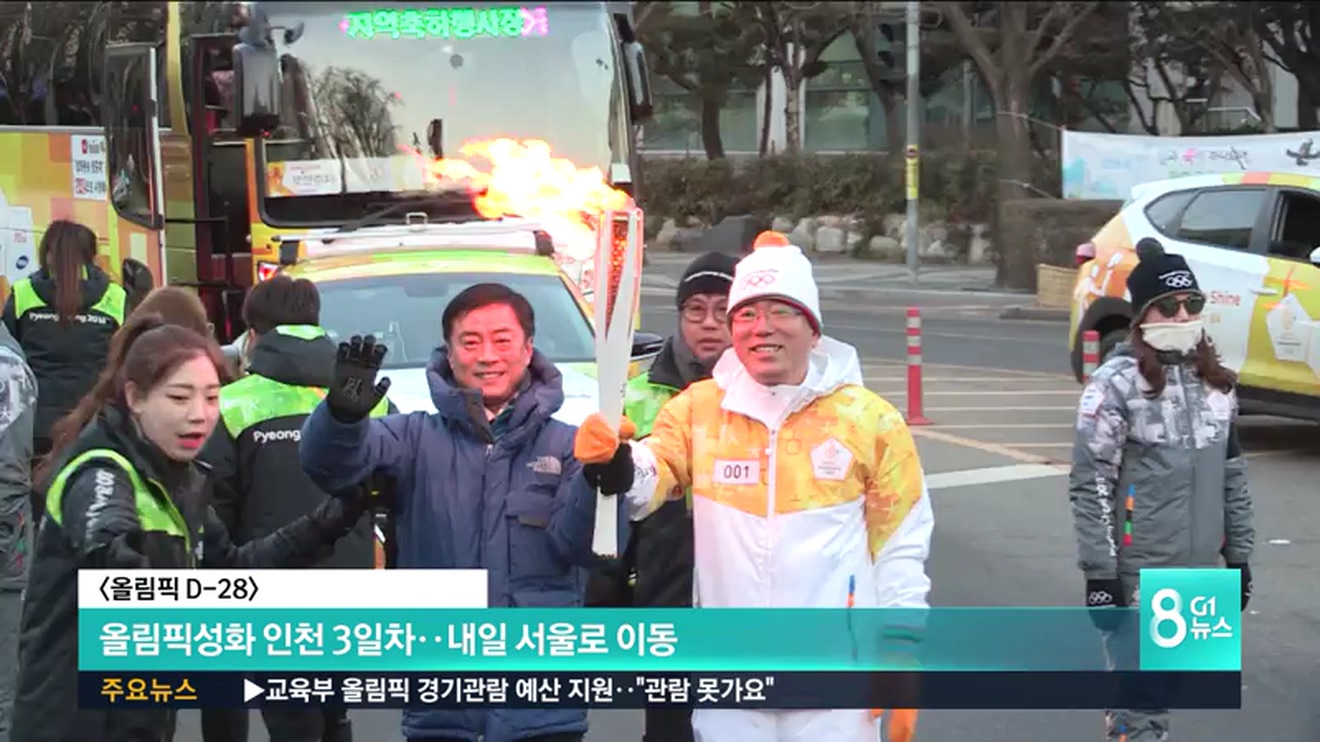 평창동계올림픽 개막이 28일 앞으로 다가온 가운데, 올림픽성화는 오늘도 인천광역시를 밝혔습니다.