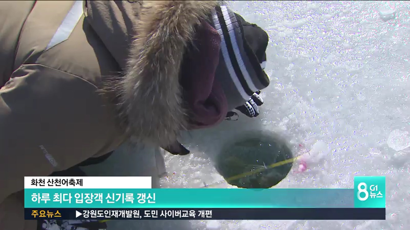 화천군에 따르면 어제(13일) 하루 축제장 입장객이 21만7천764명으로, 지난해 1월 21일 18만6천 724명의 기록을 깨고 축제 역사상 하루 동안 가장 많은 인파가 찾은 것으로 집계됐습니다.