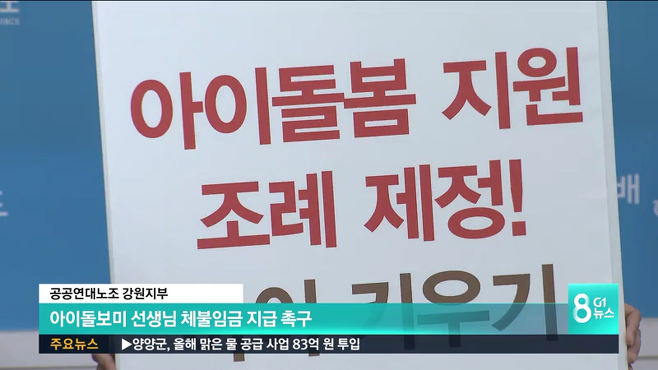 또 "우선적으로 강원도는 아이돌보미 노동자에 대한 지원 조례안를 개선하고, 교통비 등 각종 수당을 지원하라"고 촉구했습니다.