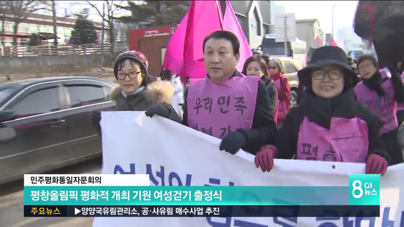 대통령 직속 통일자문기구인 민주평화통일자문회의 강원지역회의와 여성분과위원회가 주최한 여성평화걷기는 평창올림픽의 평화적인 개최와 전쟁 없는 생명.평화.상생의 한반도를 기원하는 취지로 마련됐습니다.