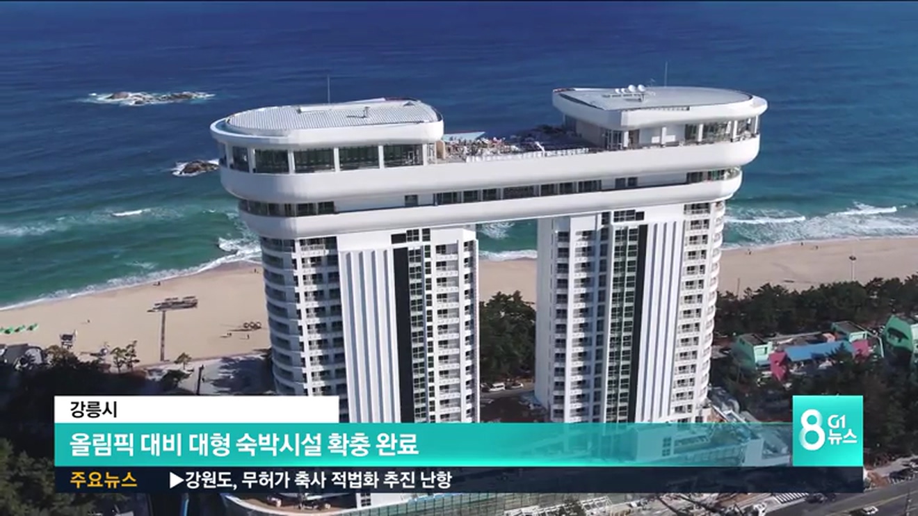 강릉시가 평창 동계올림픽 성공 개최를 위해 경포.옥계 일원에서 추진해 온 대형 숙박시설 확충 사업이 오늘 스카이베이 경포호텔 개장과 함께 완료됐습니다.