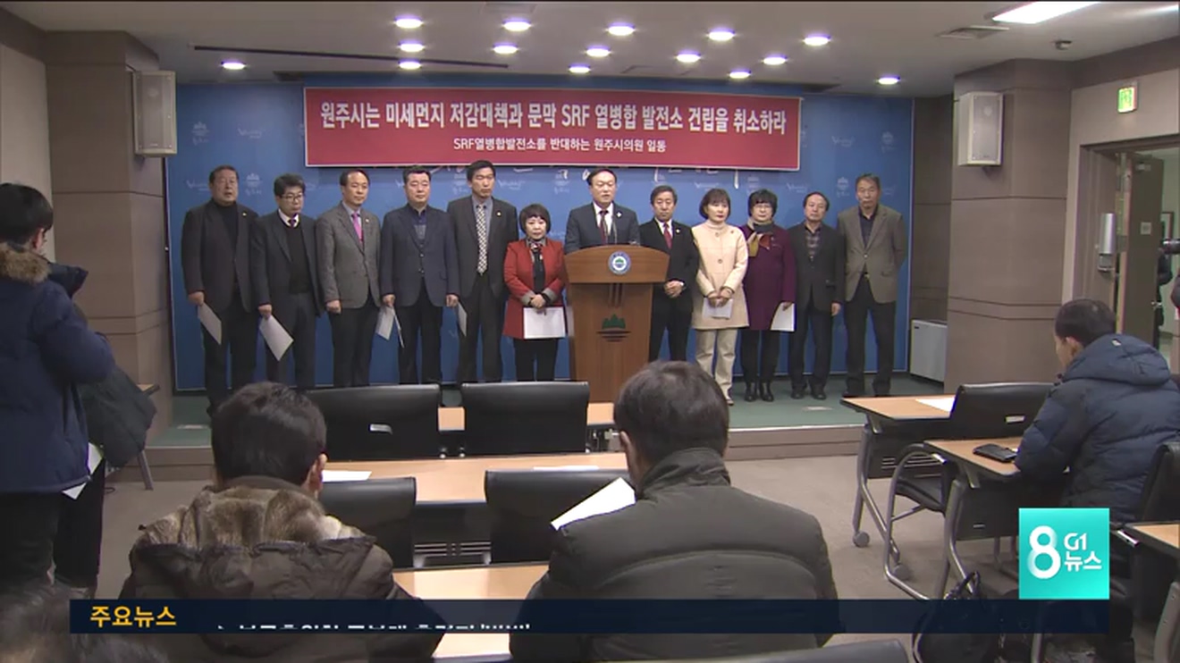 자유한국당 소속 원주시의원 12명은 오늘 원주시청 브리핑룸에서 기자회견을 열고, 문막 SRF 열병합발전소의 건립을 반대한다고 밝혔습니다.