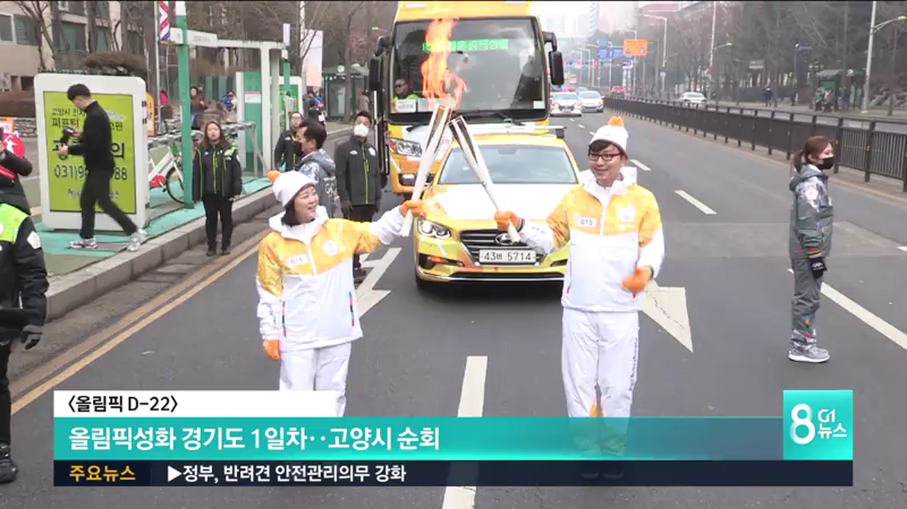 평창동계올림픽 개막이 22일 앞으로 다가온 가운데, 올림픽성화는 오늘 경기도 고양시를 밝혔습니다.