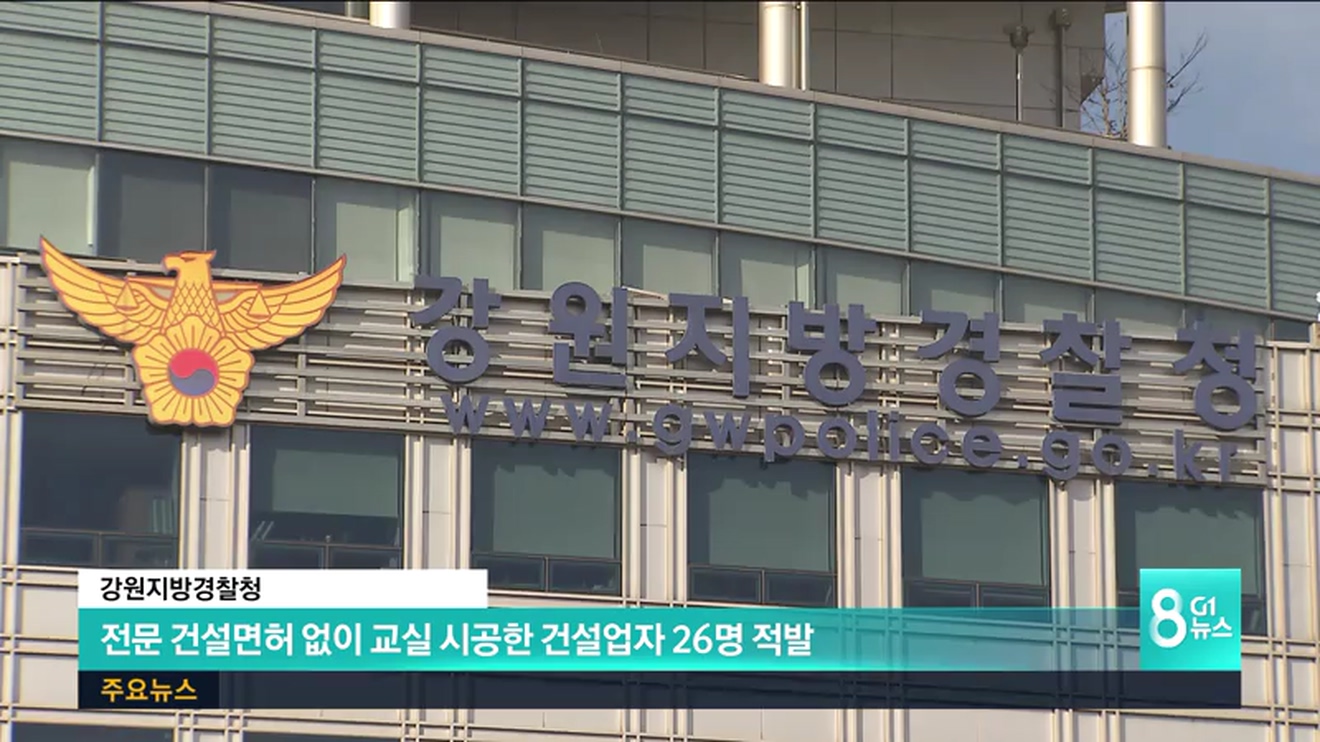 이씨 등은 지난 2014년부터 3년 동안, 전문건설업 등록 없이 강원도교육청이 발주한 특별교실 현대화사업 등 5억원 상당의 공사 27건을 시공한 혐의를 받고 있습니다.