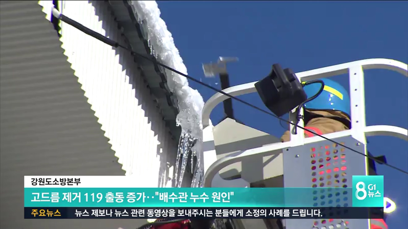 강원도소방본부에 따르면, 지난해 12월부터 지난 18일까지, 고드름 제거 신고 건수는 28건으로, 전년도 같은 기간 12건보다 133% 증가했습니다.