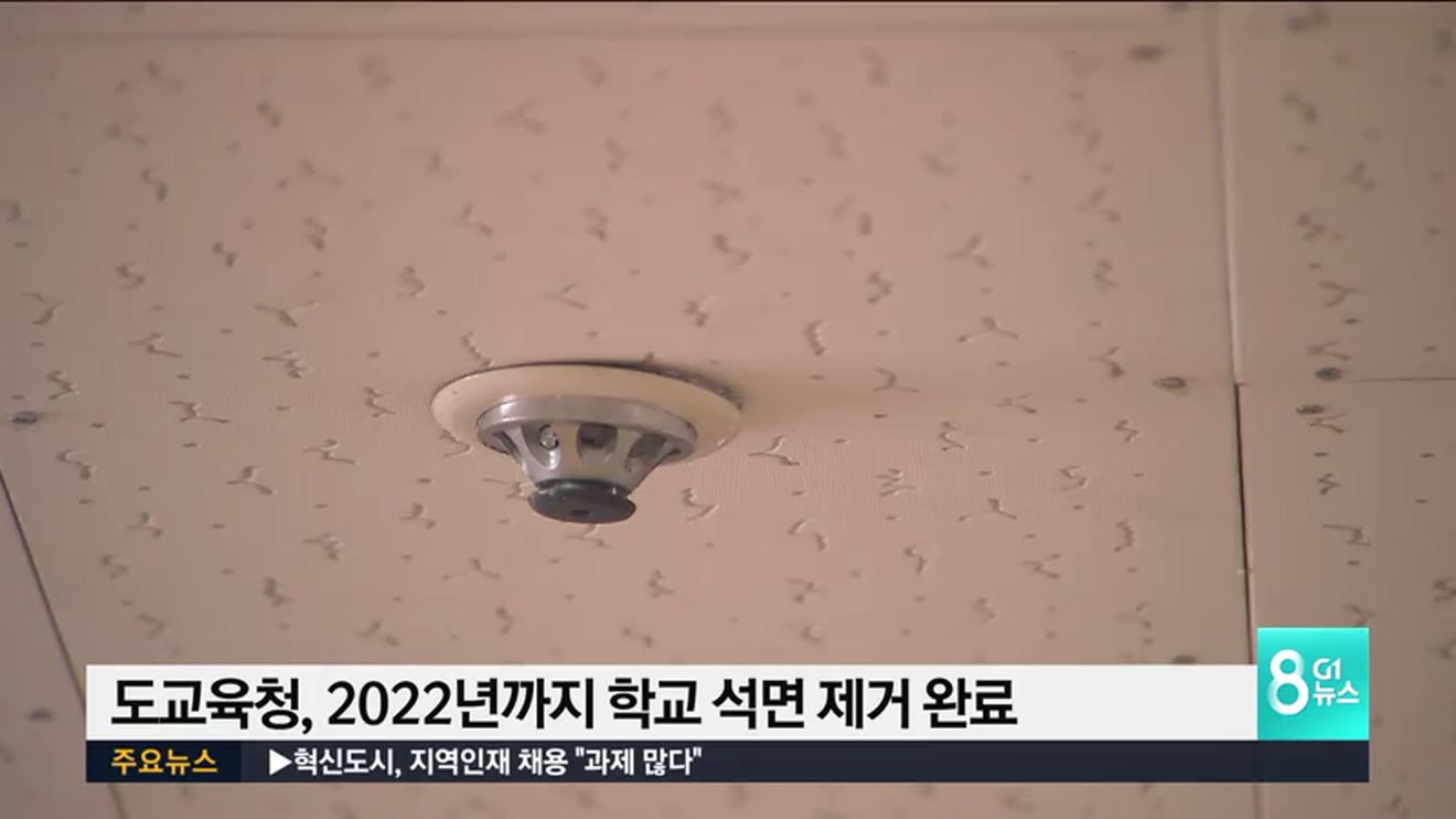 도교육청은 교육부 석면제거사업 목표 기한은 2027년이지만, 강원도는 이보다 5년 앞당겨 2022년까지 석면제거 사업을 마무리 할 방침이라고 밝혔습니다.