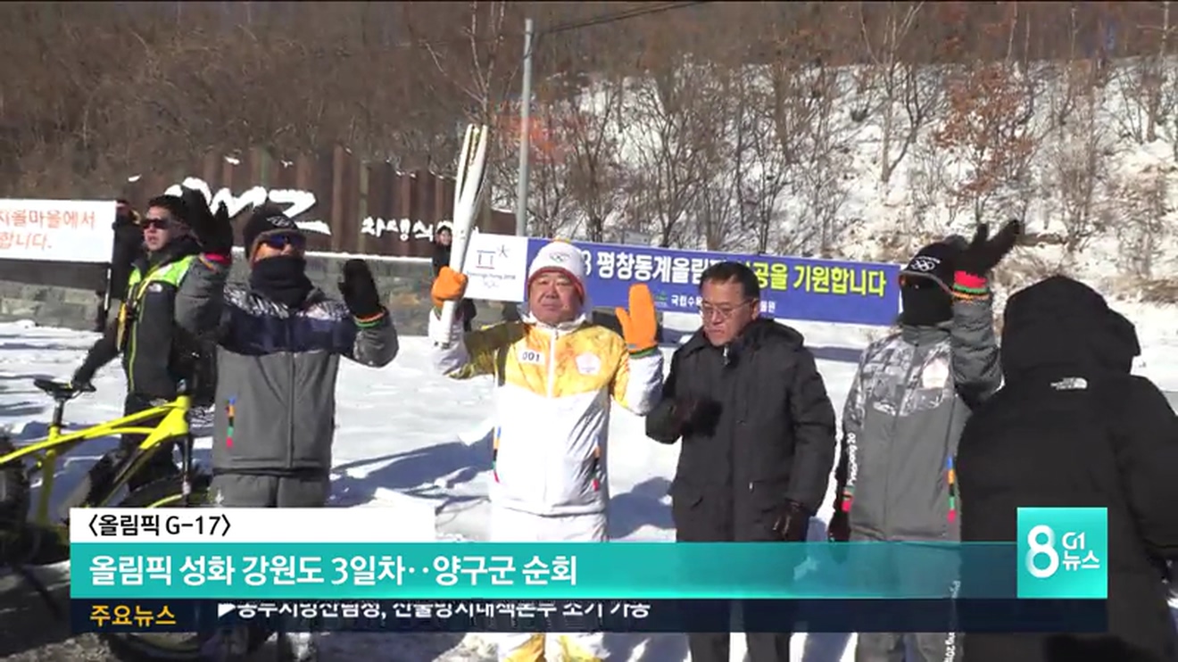 평창동계올림픽 개막이 17일 앞으로 다가온 가운데, 올림픽 성화는 오늘 양구군을 밝혔습니다.