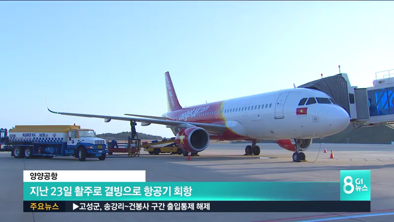 한국공항공사 양양지사에 따르면, 지난 23일 오전 6시30분쯤 관광객 160여 명을 태우고 양양공항에 착륙하려던 베트남 다낭발 항공기가 활주로 결빙으로 착륙하지 못하고 인천공항으로 회항했습니다.