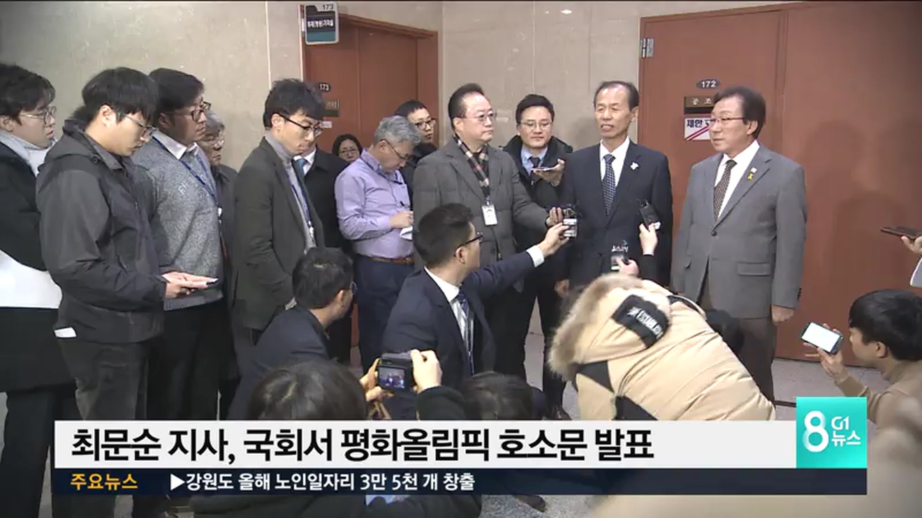 또 평화 올림픽을 치르는 유일한 길은 북한의 참가인 만큼, 북한 참가를 환영하면서 평창 올림픽을 세계인들의 축복 속에 축제로 치러질 수 있도록 정치권과 언론이 함께 해 달라고 요청했습니다.