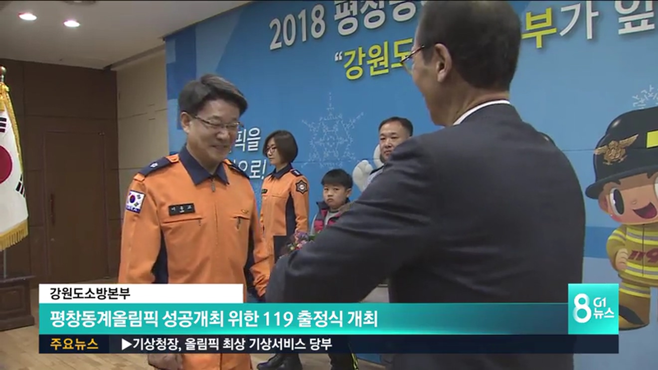 강원도소방본부는 강원도청 별관 소회의실에서 최문순 강원도지사와 소방공무원, 의용대원 등 200여명이 참석한 가운데, 평창동계올림픽 성공개최를 위한 119 출정식을 개최했습니다.
