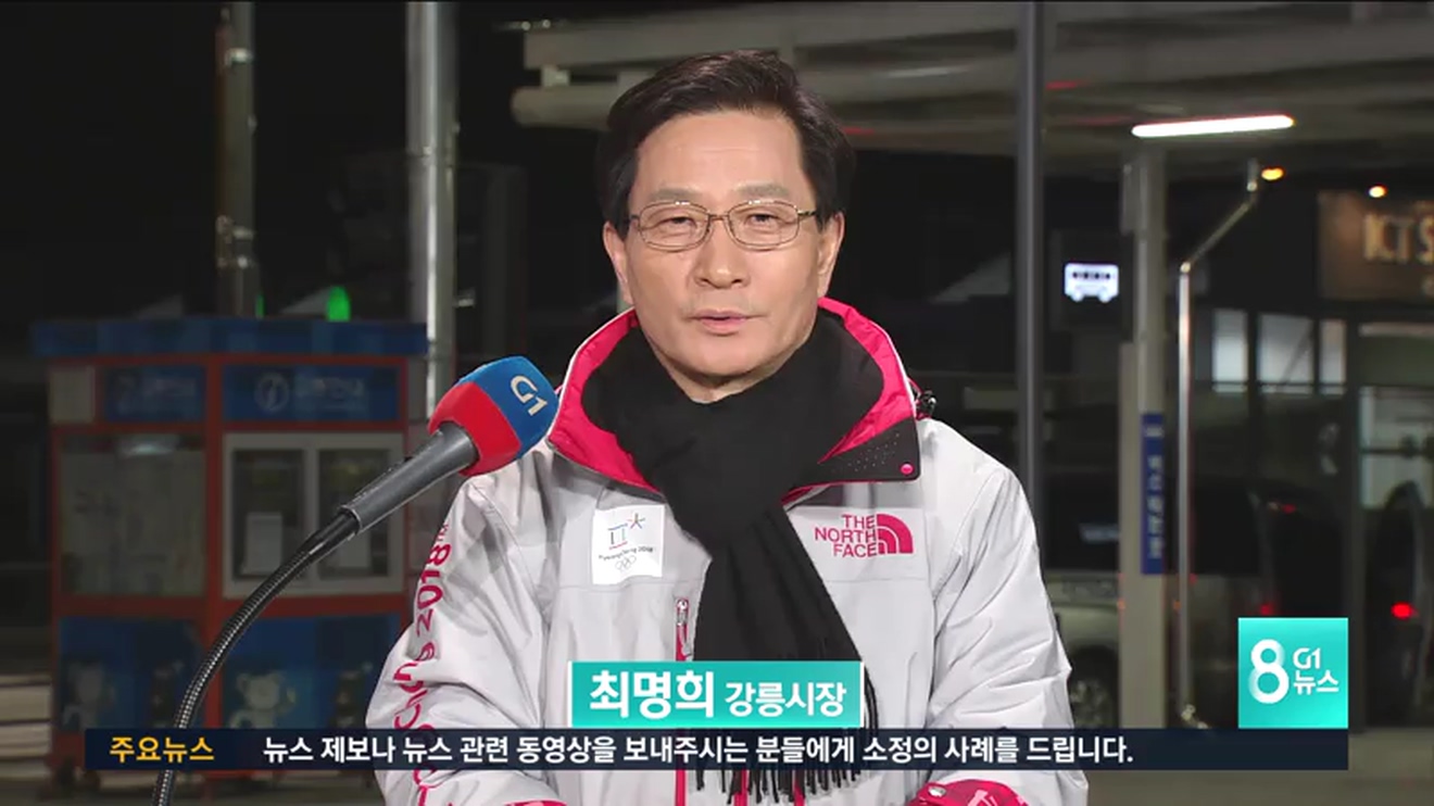 남) 네, 그럼 빙상경기 개최도시인 이곳 강릉시의 시장을 모시고, 올림픽 준비 상황에 대해 얘기 나눠보도록 하겠습니다.