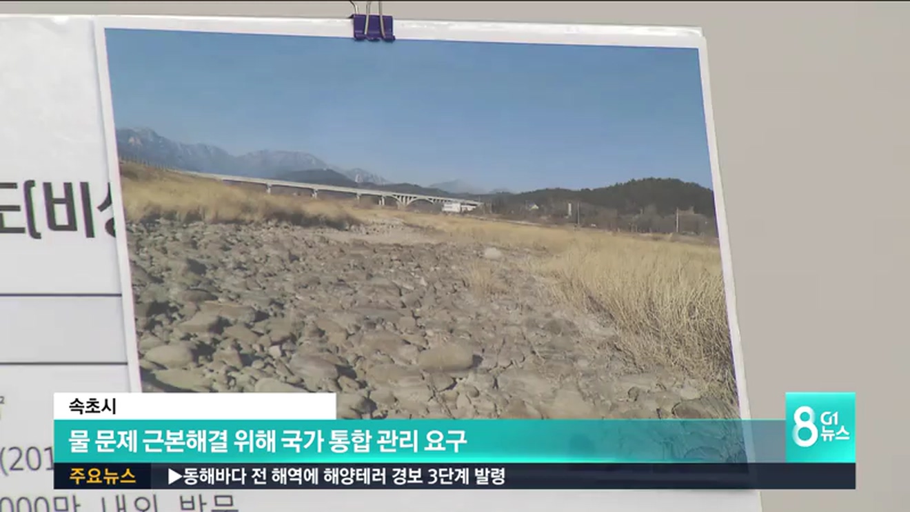 이병선 속초시장은 긴급 기자회견을 열고, "속초시는 취수원이 적어 해마다 반복되는 급수난을 겪고 있다"며 "수자원 분포가 고르지 못해 지역 간 물 이용을 놓고 갈등까지 빚고 있는 만큼 이제는 자치단체가 아닌 국가가 유역 단위에서 통합적으로 관리해야한다"고 주장했습니다.