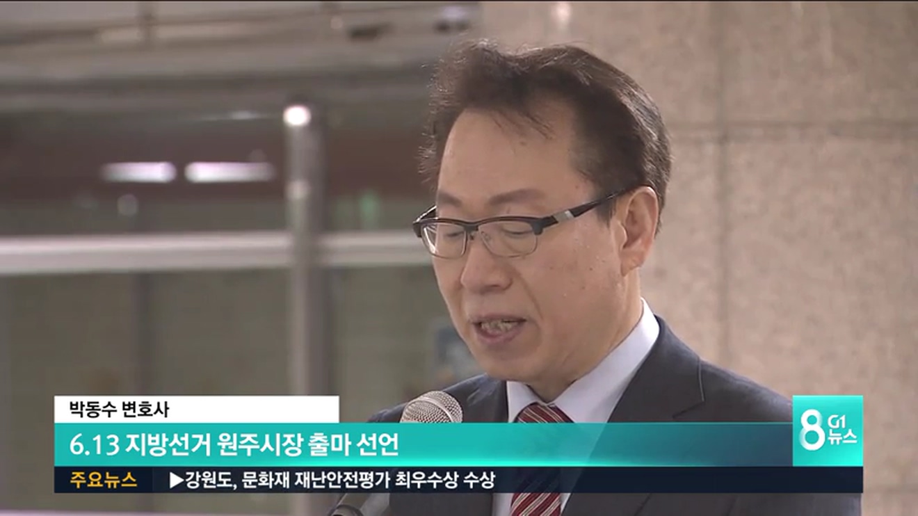 박동수 변호사는 오늘 원주 협동조합 네트워크 광장에서 기자회견을 열고, 6.13 지방선거 원주시장 출마를 선언했습니다.