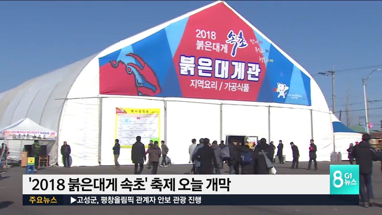 지역 명품 특산물인 붉은대게를 한자리에서 즐길 수 있는 '2018 붉은대게 속초' 축제가 오늘(8일) 개막했습니다.