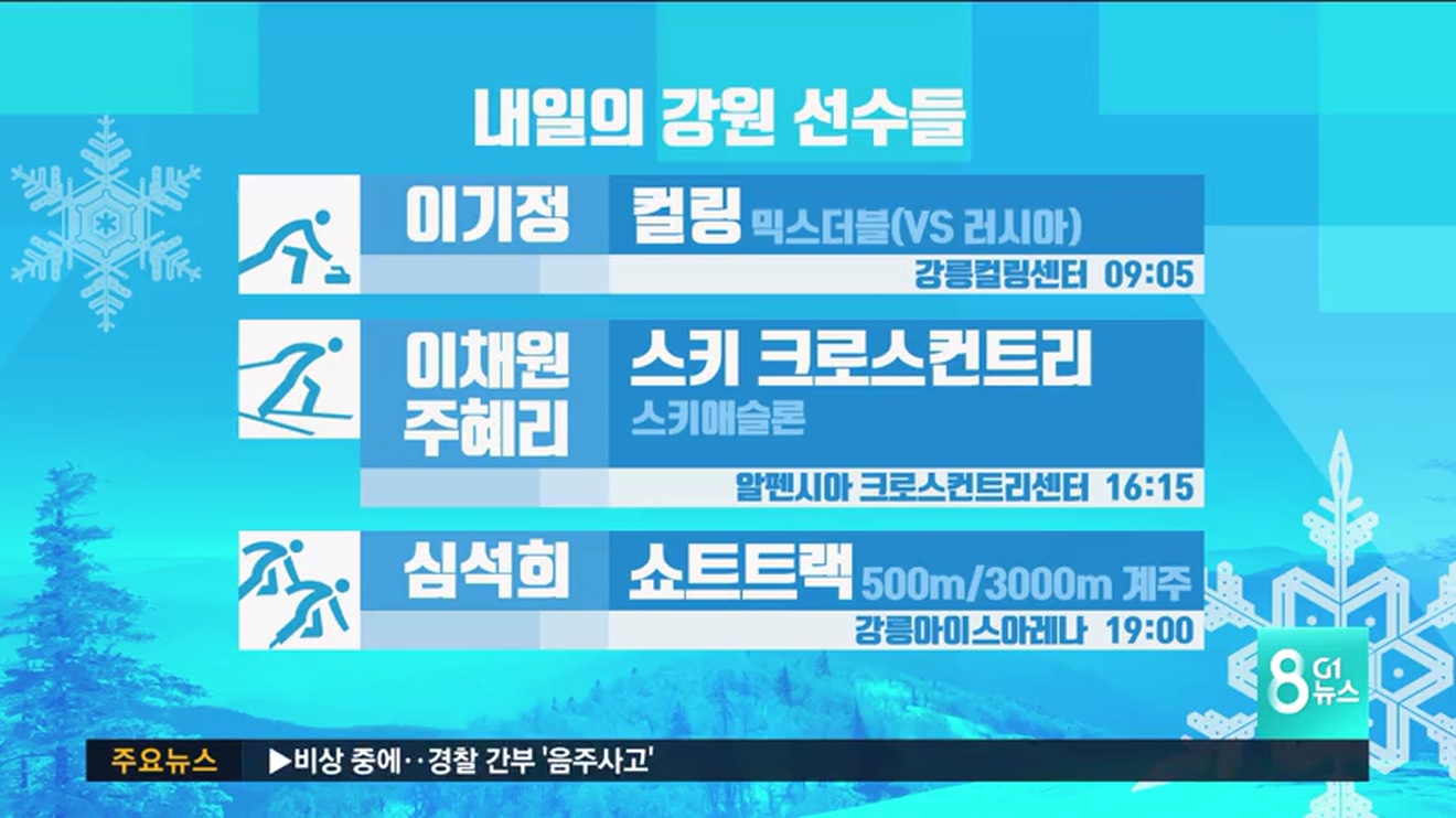이어서 강원도 출신 선수들의 내일 주요 경기 일정을 전해드립니다.