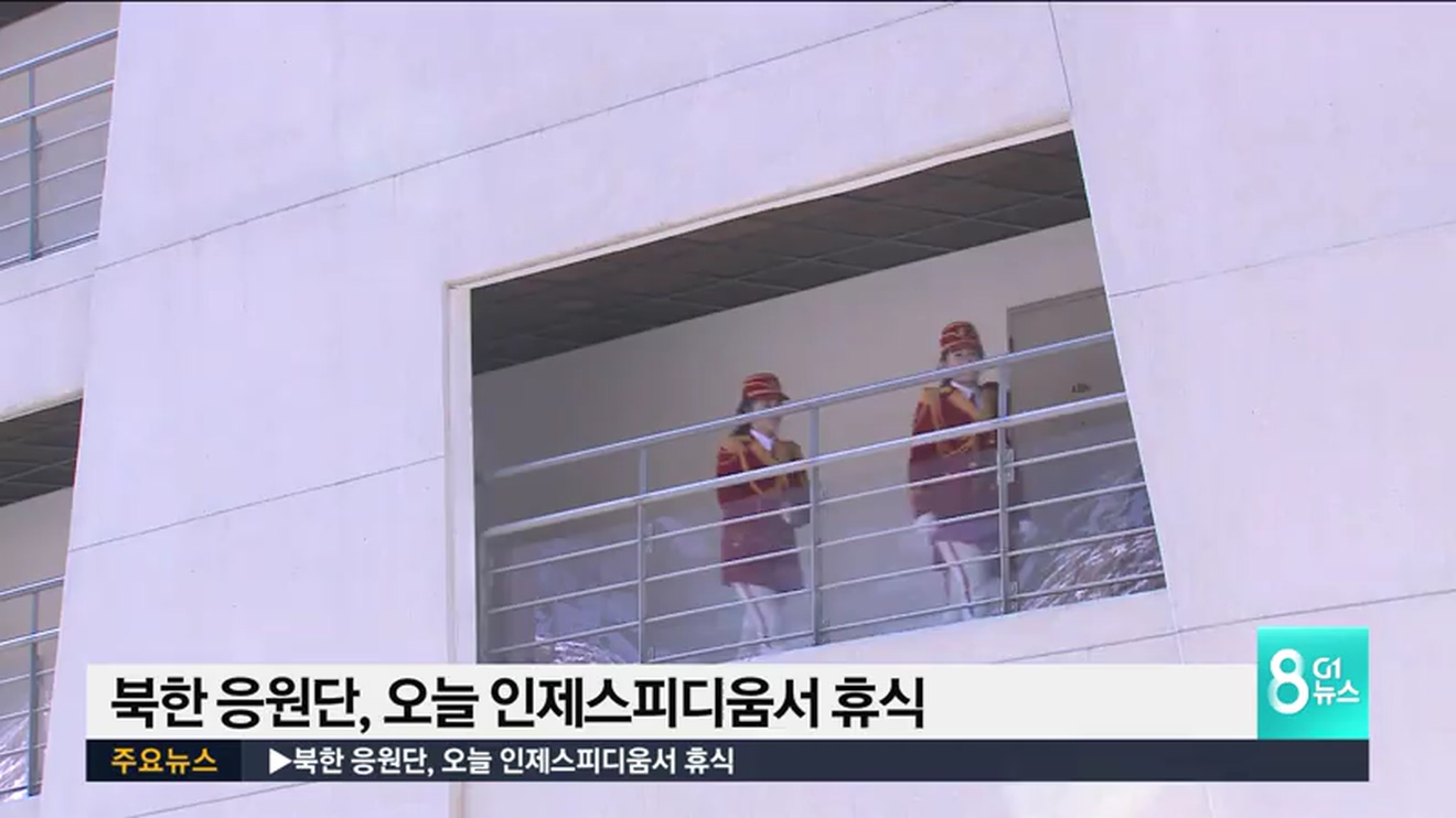 개회식 참석과 단일팀 응원으로 이틀 연속 자정까지 강행군을 한 평창올림픽 북한 응원단이 오늘은 숙소인 인제 스피디움에서 휴식을 가졌습니다.